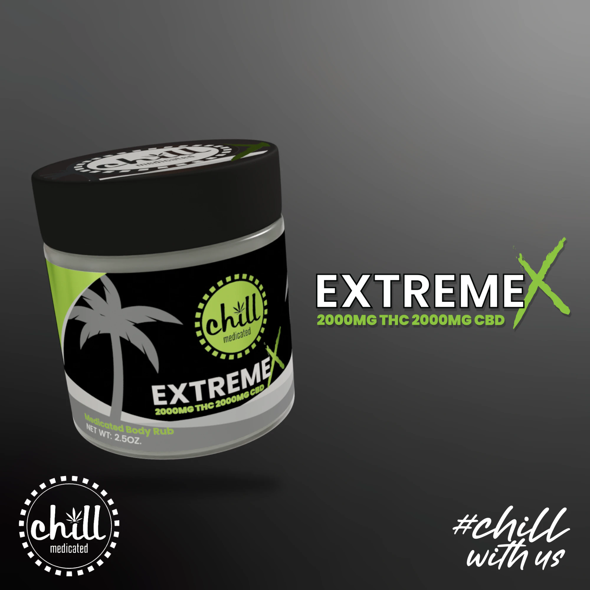Chill Medicated - EXTREME X Body Rub - 2000mg THC : 2000mg CBD